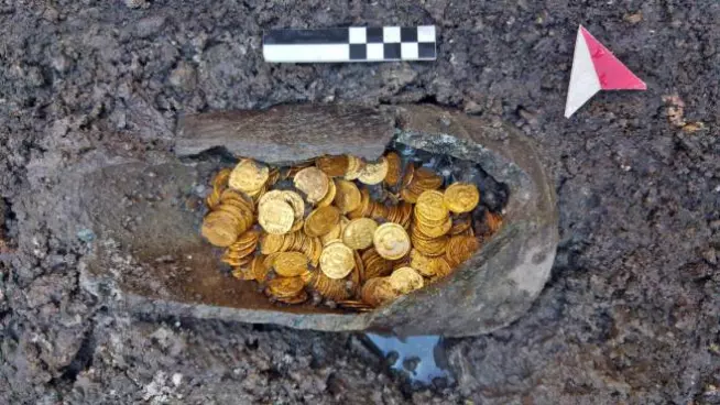 Il tesoro di monete d'oro di tarda epoca imperiale è stato recuperato durante lo sbancamento dell'ex-cinema Cressoni, nel cuore del centro storico di Como. L'annuncio è del 7 settembre 2018.